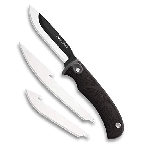 The first fixed blade addition to the popular RazorSafe™ Series with two styles of interchangeable 3.5 inch drop-point, and new 5.0 inch boning/fillet blades to field dress, debone and process game into perfect cuts for the table—all with a single tool. The rubberized TPR handle is ergonomically shaped for a positive, nonslip grip, and prevents fatigue during long periods of use. Comes complete with six blades and polymer/nylon belt sheath with detachable blade carrier and storage box.