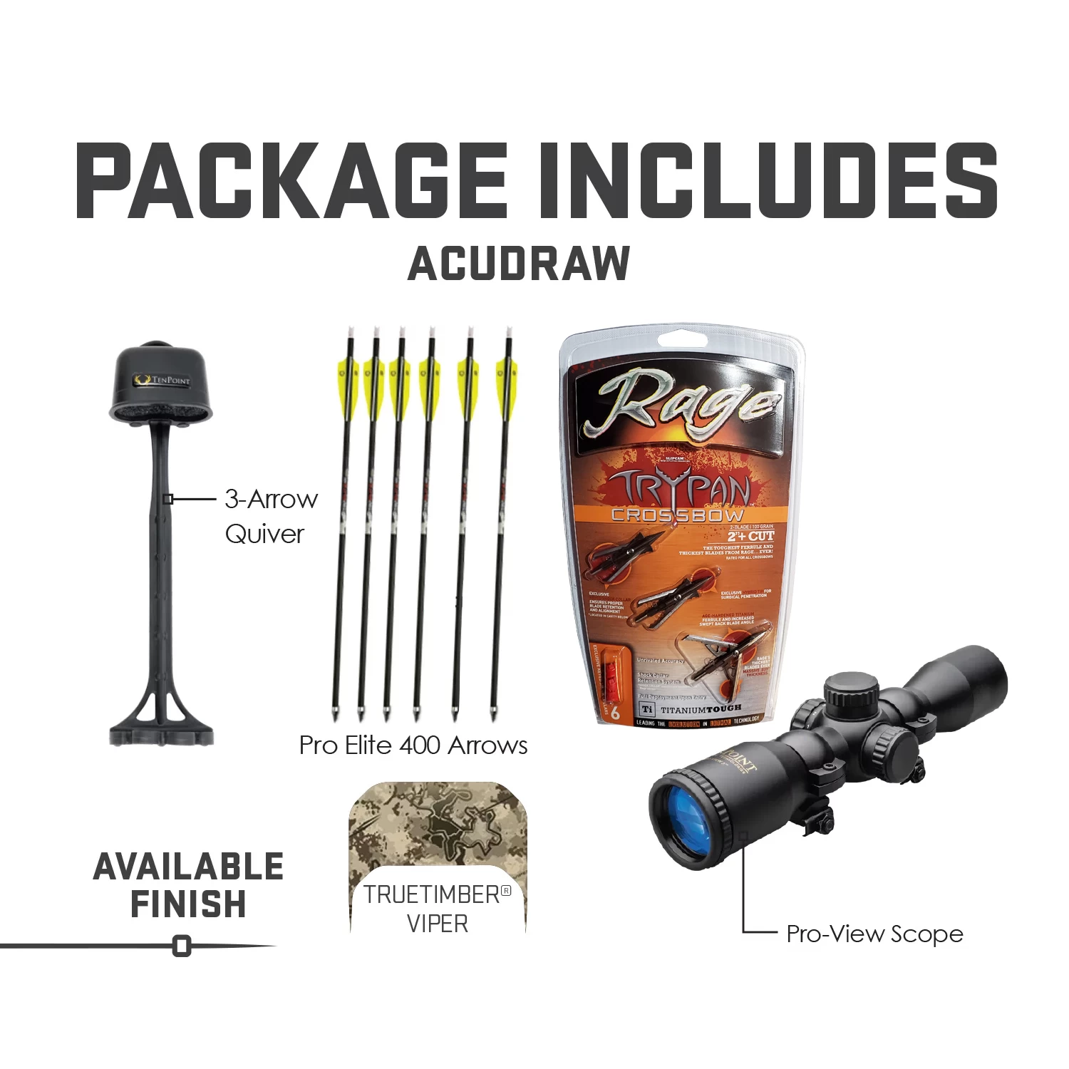 A complete makeover of our all-time best-selling model, the Titan M1 is an incredible 9.5-inches narrower and 30 feet-per-second faster than its legendary predecessor. Powered by VX-5 inverted cams that elongate the power stroke and increase rotation, it delivers lethal accuracy shot-after-shot. Available with or without the legendary ACUdraw cocking device, the cost-effective Titan M1 is the best value on the crossbow market.