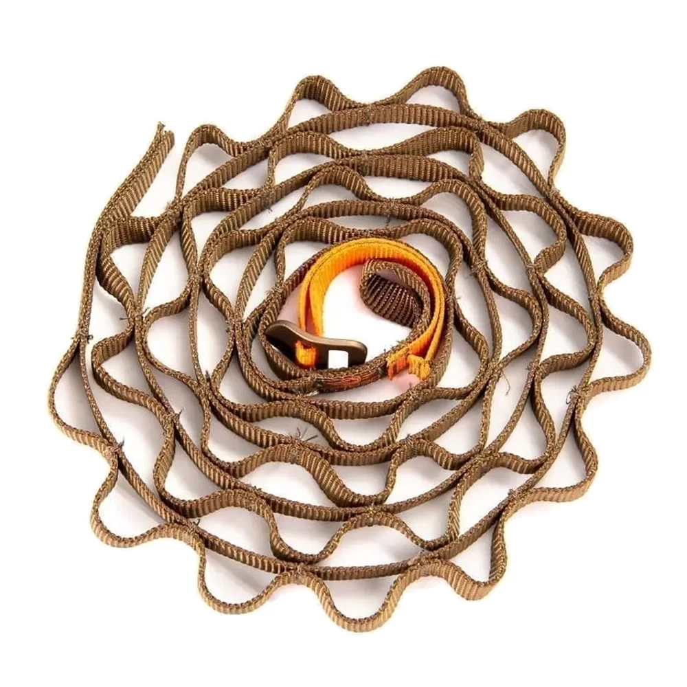 The HYS Strap is made of high strength, mildew and rot resistant polyester that enables you to hang your stuff in whatever way makes sense to you. Put some stuff around the back side of the tree, some on the left, and some on the right. You can easily move your gear and position it wherever it makes sense for your style of hunting. To attach it, simply girth hitch it with any of the existing loops, or use the included T-hook for a quick connection. If you hunt small trees, cut it to length. You won’t hurt anything.