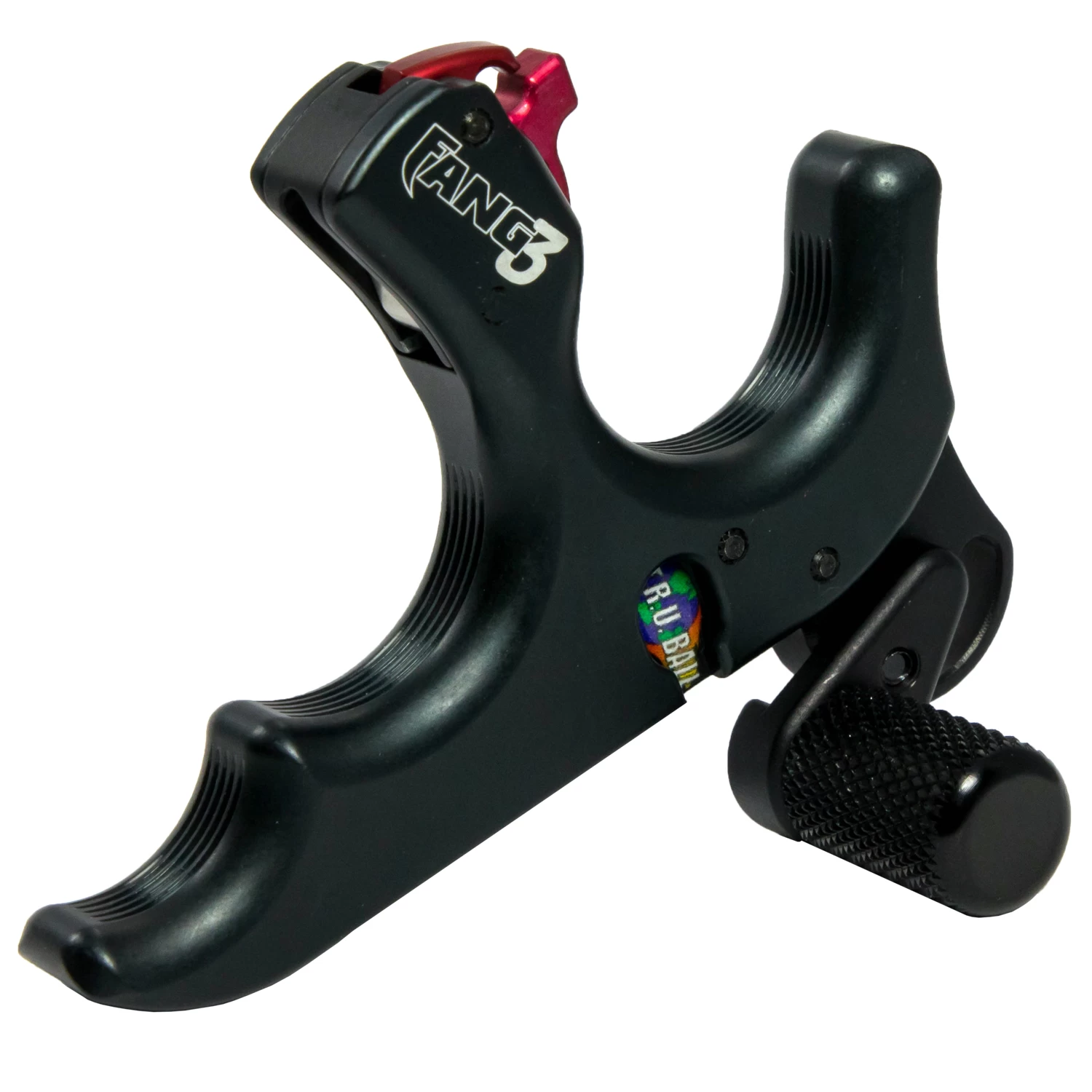 The Fang 3 features a Full Containment System (FCS) with a hook-style jaw that allows the archer to push the FCS slide forward to lock the release on the D-loop, for use in a hands free hunting situation or pull the FCS slide back for repetitive shooting. The Fang 3 provides the ability to shoot with no sensitivity spring for the lightest possible setting or a medium and heavy spring, included in the package for heavier sensitivity settings. An independent trigger travel adjustment screw allows numerous different settings as desired by the archer. Adjustable thumb barrel positions can be attained with the large knurled thumb peg and teardrop. Pull the trigger to fire, then pull trigger again after firing to reset the hook. Available in black.
